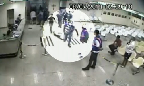 As imagens mostram o homem sendo arrancado da cadeira de rodas onde esperava atendimento e arrastado pelo chão para fora do hospital. Ainda é possível ver que os dois homens que o acompanhavam também foram agredidos e retirados do local.