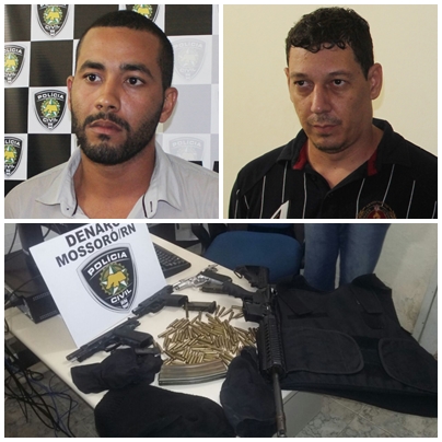 Agentes da Delegacia de Narcóticos de Mossoró, no Oeste potiguar, prenderam Kercio da Silva Pereira, 32 anos de idade, e Douglas Victor Araújo de Macedo, 21 com um fuzil AR15, três pistolas e munição.